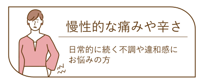 あなたの体のお悩みを一緒に改善し、笑顔溢れる毎日をサポートします。ここに来てよかったと思っていただけるはずです!